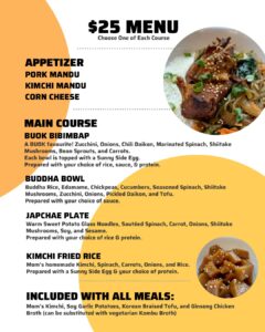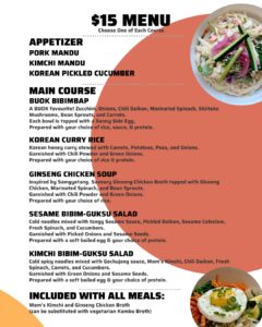 Choose from Bulgogi Beef or Denjung Pork or Ginseng Chicken or Tofu